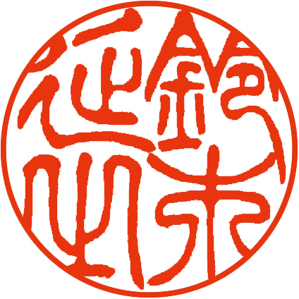 またどの文字にも必ず1つだけ「波磔(はたく)」と呼ばれる主役の線があるのが隷書の特徴になり、印章製作においては丸い枠との兼ね合いに腕が問われます。